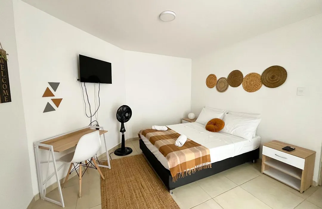 El Ecoparque Cerro El Volador se encuentra a 25 minutos a pie de este apartamento de 22 m^2, mientras que el Comfenalco parque guayabal está a 2 km. Desde este apartamento, el Belén está a unos 2 km.